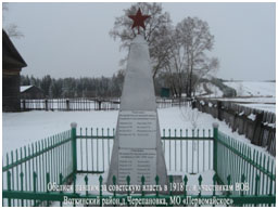 расстрелянных белогвардейцами в 1918 году в д. Болгуры, с. Степаново и с. Кельчино, и обелиск на Братской могиле борцов, павших за советскую власть в д. Черепановка.